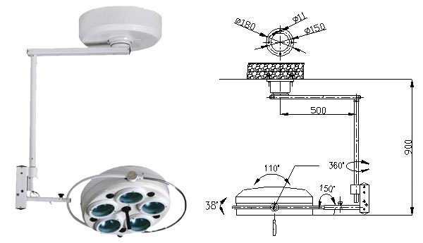 - Матеріали з низькою вагою, що використані у виробництві операційної лампи, забезпечують її портативність та мобільність.