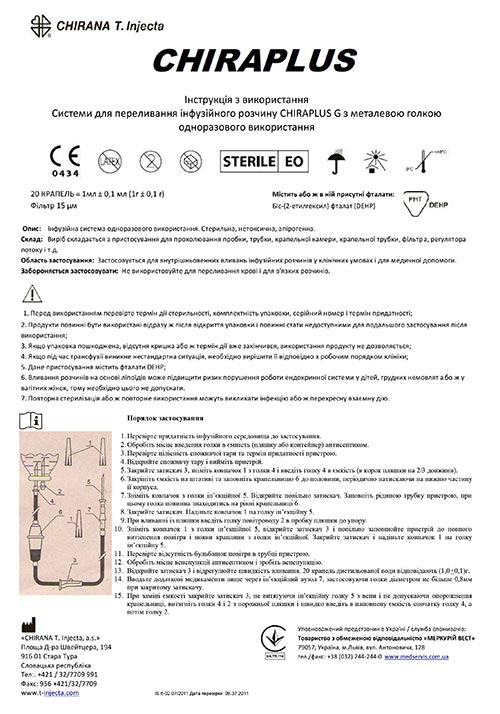 Для продукції CHIRANA T.Injecta, s.r.o, Чеська республіка